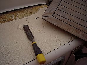 Die Backskistendeckel waren mit dünn furniertem Sperrholz belegt, das schon nach wenigen Jahren abgenutzt war. Wir haben die Platten entfernt und durch vorgefertigte 5mm starke Auflagen ersetzt, die sich schon seit vielen Jahren bewähren